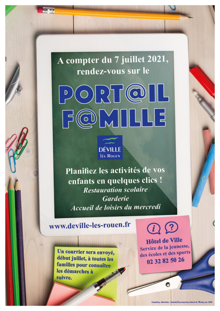Depuis n’importe quel ordinateur, téléphone ou tablette connecté à Internet, le « Portail Famille » permet de :